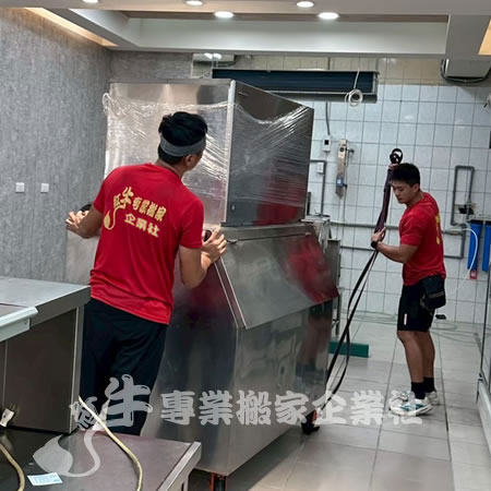 商用冰箱、冷凍櫃、烤箱等餐飲設備,搬運前會固定門片、包覆四周,運送時避免晃動與刮傷。